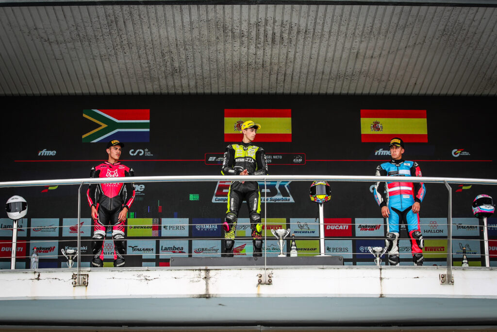 En Superbike, Palomera partía desde la primera posición, pero pronto la carrera daría un giro con Ivo colocándose al frente en los primeros compases. Odendaal tampoco tardó en superar al poleman, consolidando un nuevo orden en cabeza. A partir de ahí, la carrera se estabilizó con los pilotos de referencia marcando el ritmo hasta la bandera a cuadros, manteniéndose las posiciones en la zona delantera sin cambios en el tramo final.